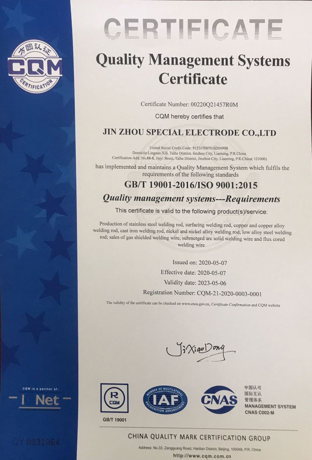Detail:Production of stainless steel welding rod, surfacing welding rod,copper and copper alloy welding rod,cast iron welding rod, nickel and nickel alloy welding rod,low alloy steel welding rod; sales of gas shielded welding wire, submerged arc solid welding wire and flux cored welding wire and related management activities